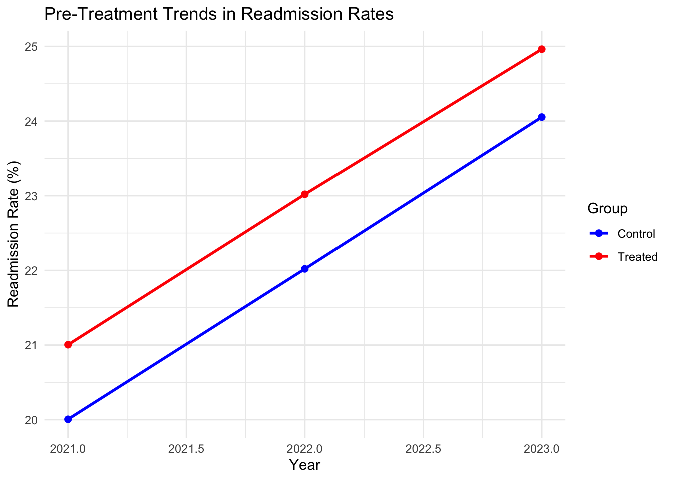 labs(title = "Pre-Treatment Trends in Readmission Rates",