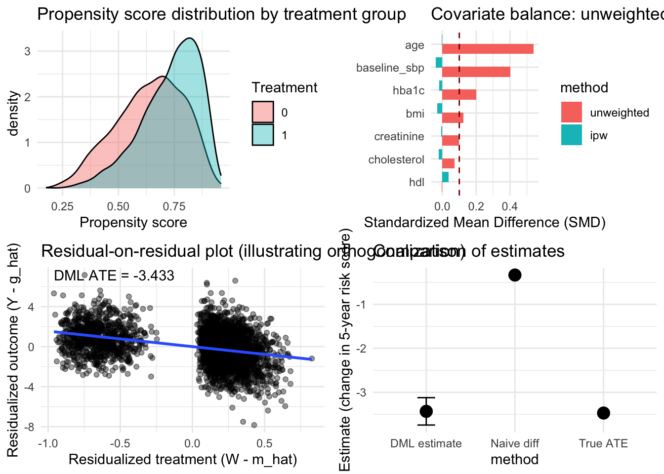 label = paste0('DML ATE = ', round(dml_coef, 3)), hjust = 0)
