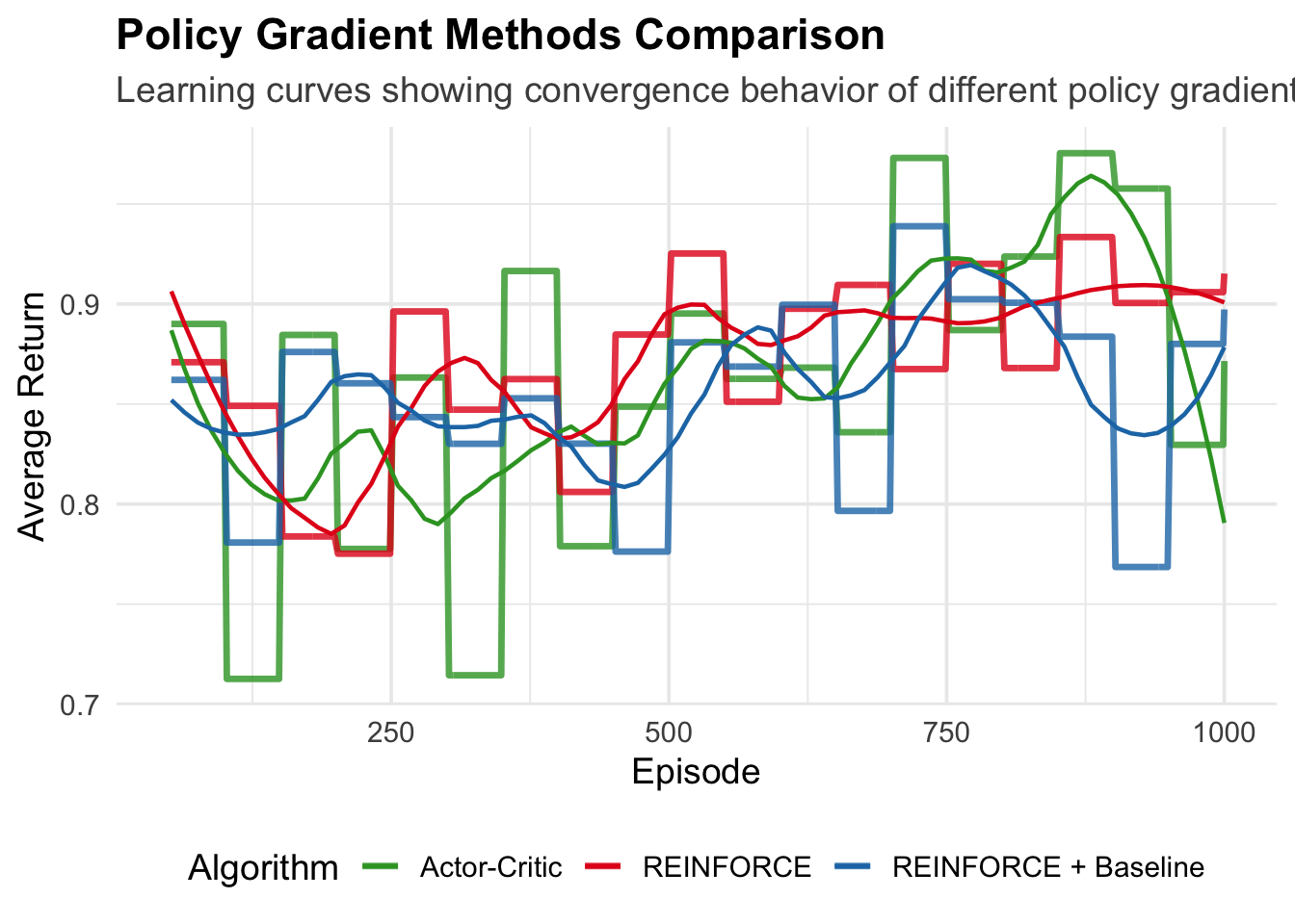Debugging policy gradient algorithms presents unique challenges because failure modes can be subtle. Unlike supervised learning where prediction errors are immediately obvious, policy gradient failures may manifest as slow learning, instability, or convergence to suboptimal policies. The stochastic nature of both the environment and the policy makes it difficult to distinguish between bad luck and algorithmic problems. Careful tracking of gradient magnitudes, policy entropy, and learning curves becomes essential for diagnosing issues.