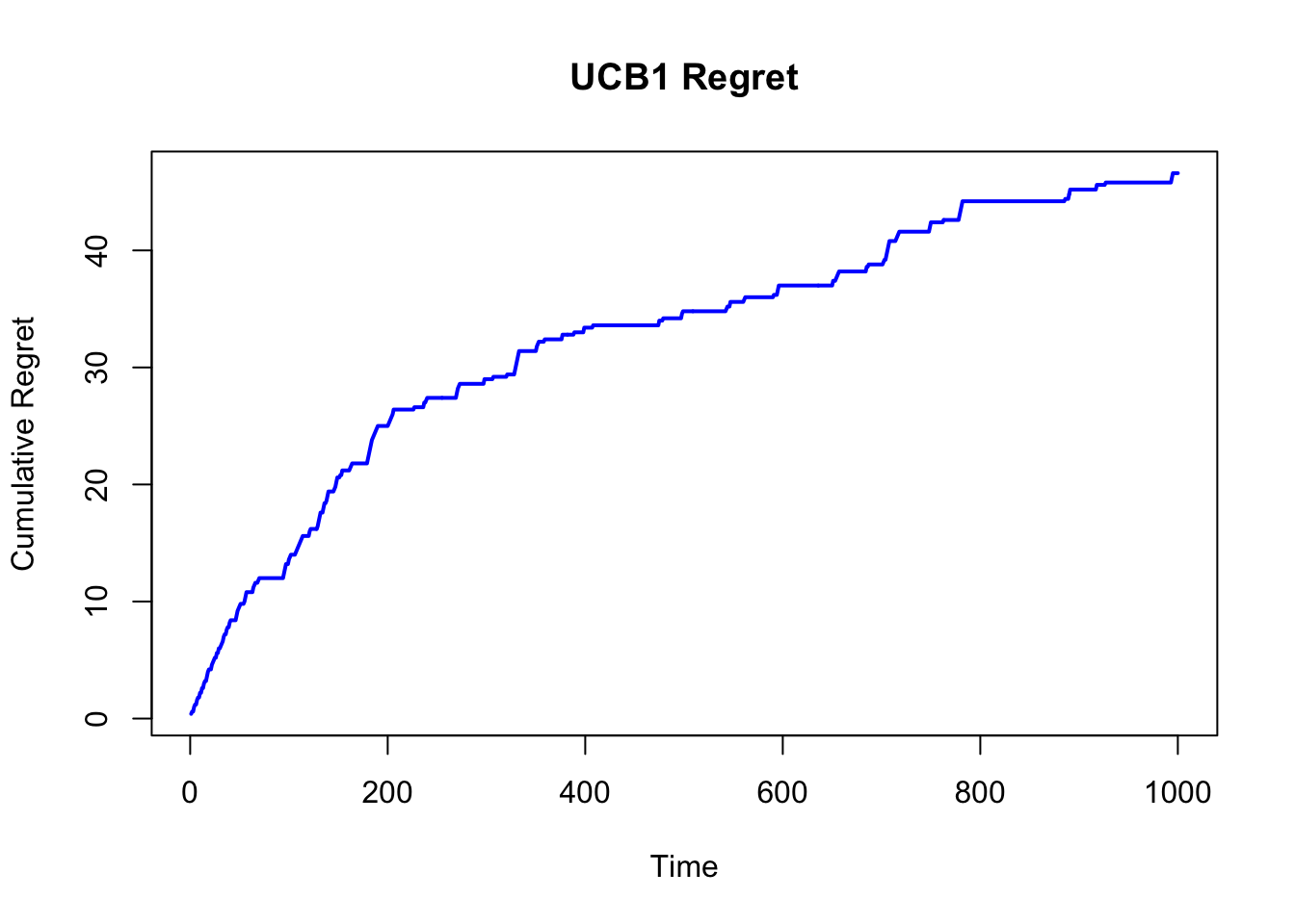 ylab = "Cumulative Regret", xlab = "Time", main = "UCB1 Regret")