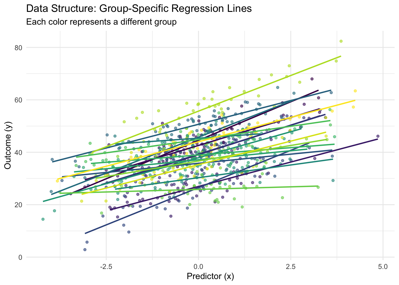 labs(title = "Data Structure: Group-Specific Regression Lines",