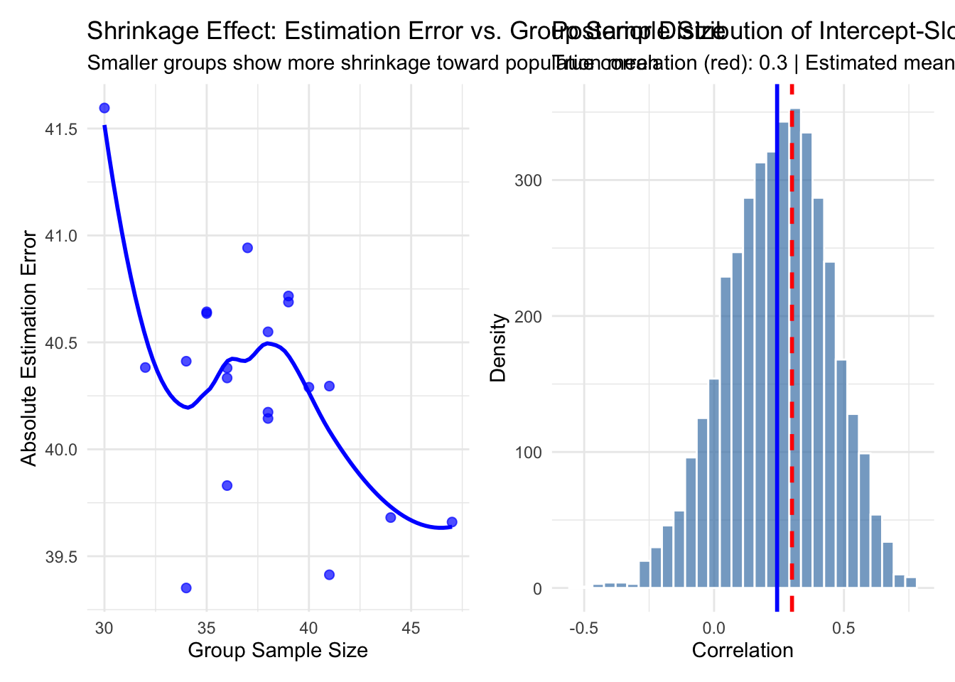 labs(title = "Shrinkage Effect: Estimation Error vs. Group Sample Size",