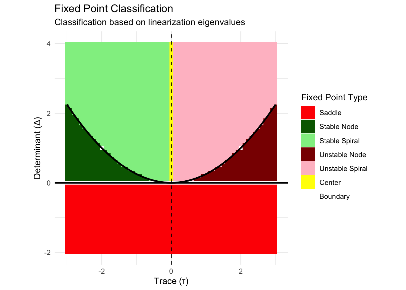 cat("Fixed Point 1 (Extinction):", fp1, "\n")## Fixed Point 1 (Extinction): 0 0