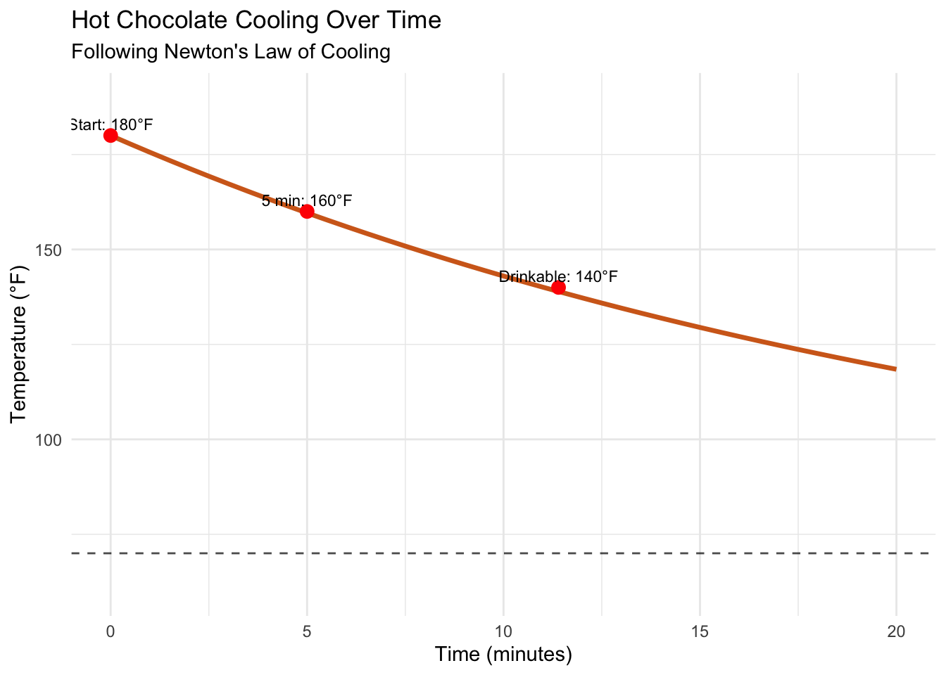 You’re sitting in a café, watching steam rise from your hot chocolate. The barista mentions it was made at 180°F, and you wonder: when will it cool to a comfortable 140°F? This isn’t just idle curiosity—it’s a differential equation waiting to be solved.