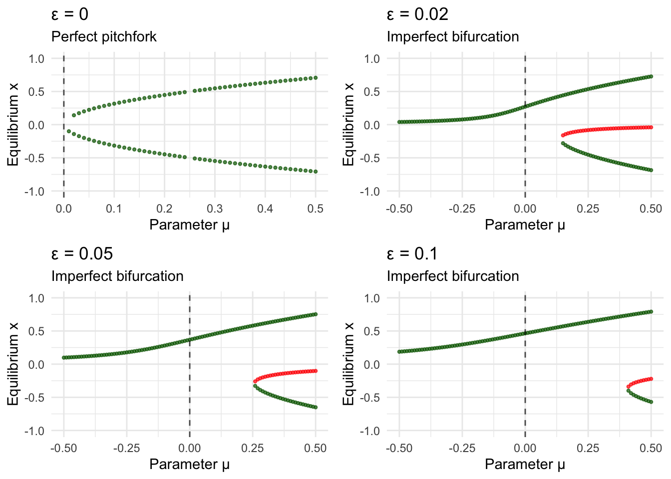 subtitle = ifelse(eps == 0, "Perfect pitchfork", "Imperfect bifurcation")