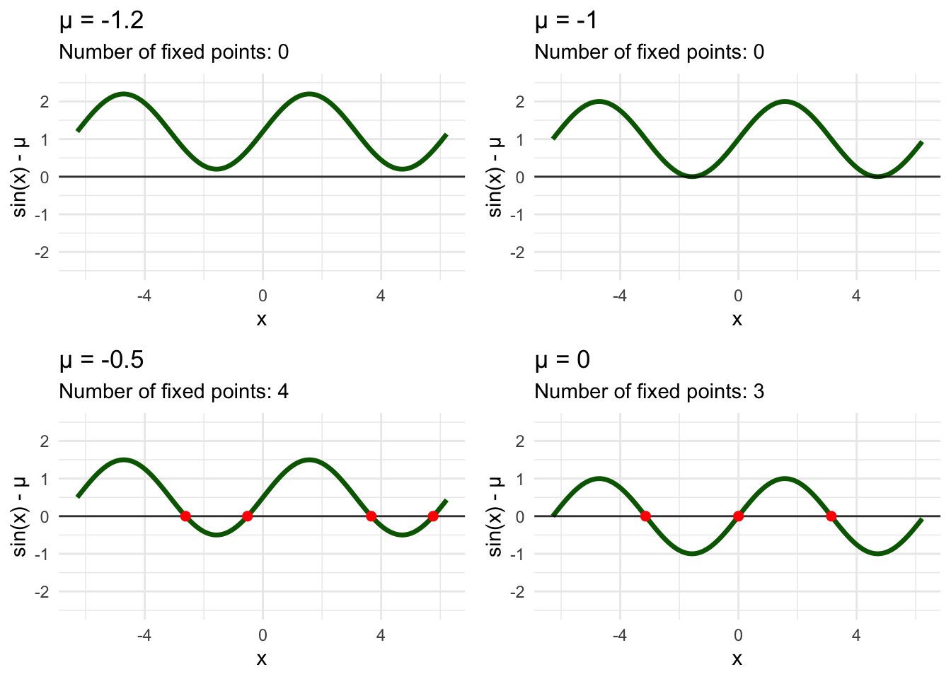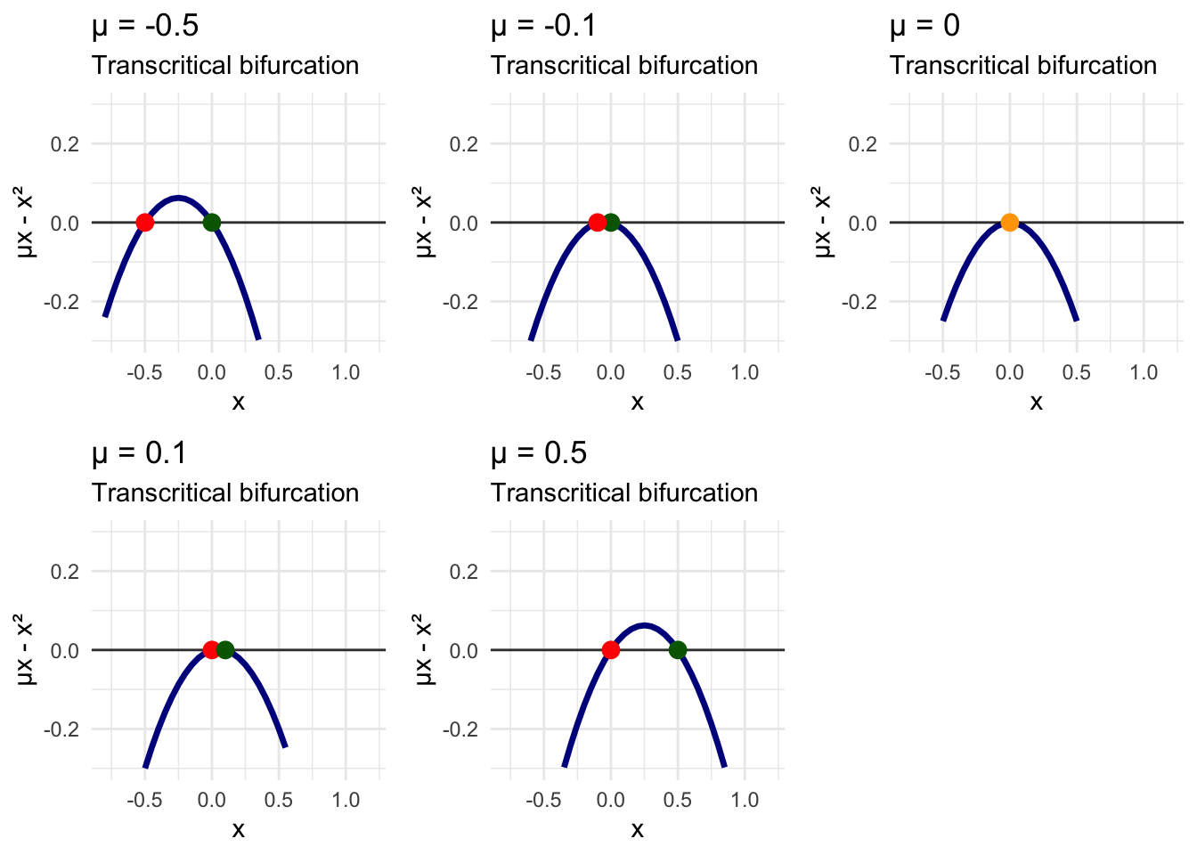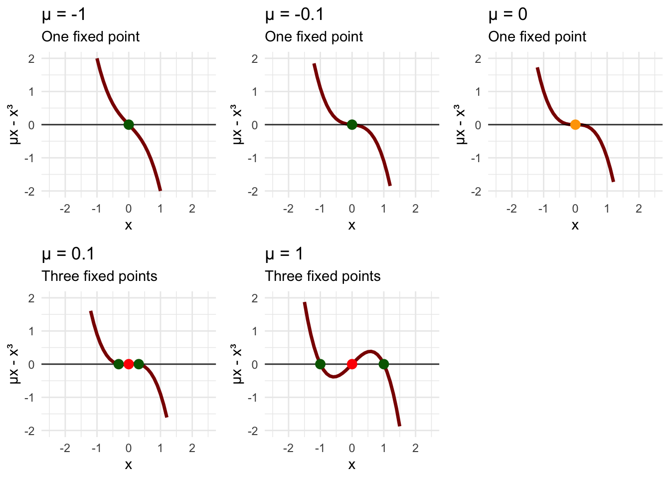 ifelse(mu == 0, "Saddle-node bifurcation",