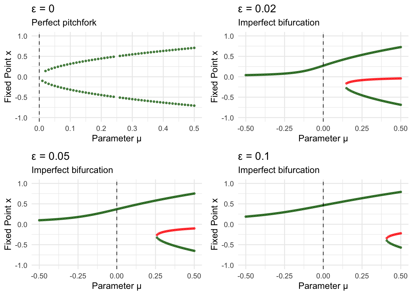 subtitle = ifelse(eps == 0, "Perfect pitchfork", "Imperfect bifurcation")